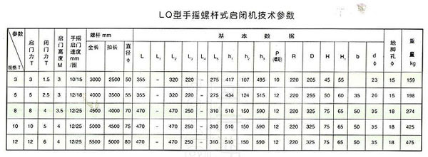 LQ型手搖螺桿式啟閉機(jī)技術(shù)參數(shù)