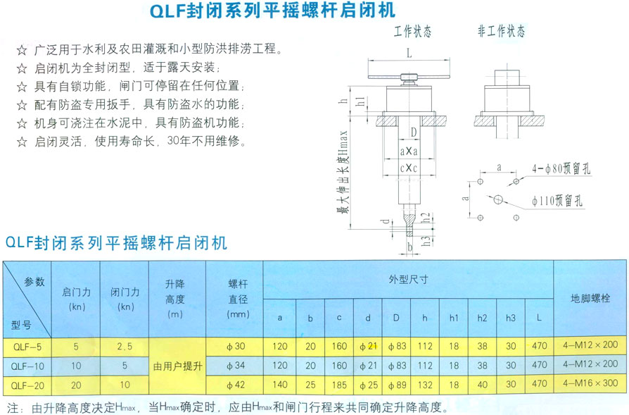 QLF封閉系列平搖螺桿啟閉機(jī)