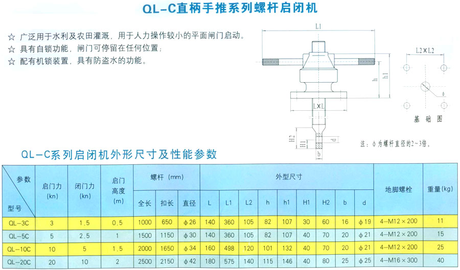 QL-C直柄手推系列螺桿啟閉機