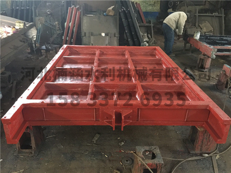 5、當閘門提升高度較高時應(yīng)增設(shè)軸承架,安裝軸承架時應(yīng)注意閘門全部打開時,絲桿的接頭處不經(jīng)過軸承架。 6、特別注意:澆注閘板時必須整體澆注,決不可以分開澆注,不然達不到止水效果。 并且固定螺栓必須等二 次澆注完成后拆除。