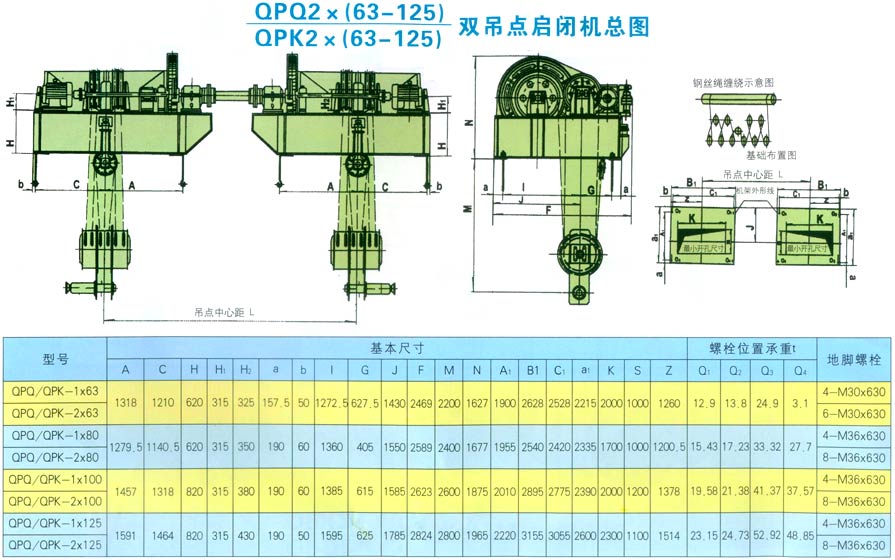 QPQ2、QPK2×(63-125)噸雙吊點啟閉機總圖