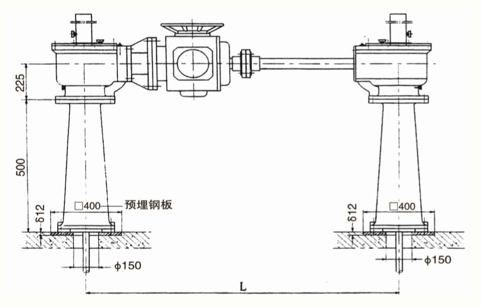 4、啟閉機(jī)一般與本公司閘門配套訂購,若單獨(dú)訂購啟閉機(jī),請注明提升高度、吊點(diǎn)至啟閉機(jī)底部距離、絲杠端部連接形式及尺寸,雙吊點(diǎn)還需注明吊點(diǎn)距L。