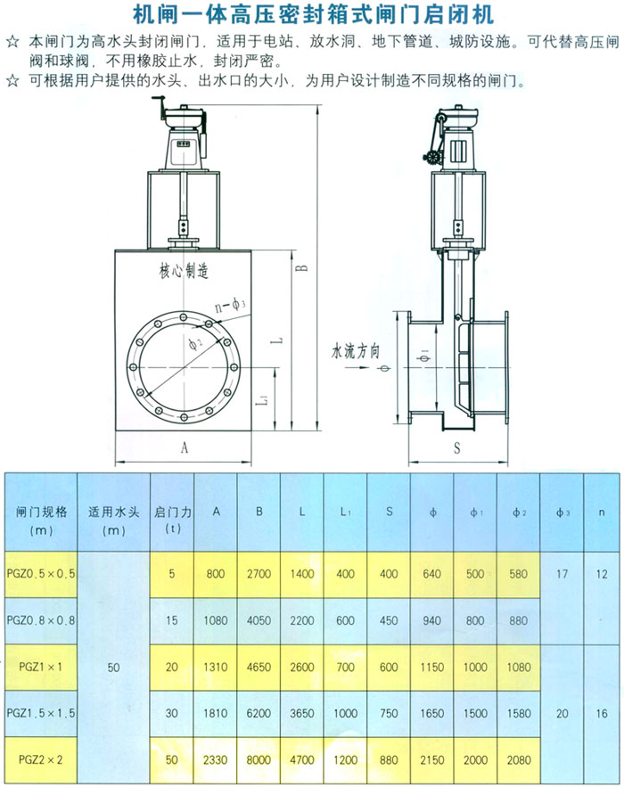 機(jī)閘一體高壓密封箱式閘門啟閉機(jī)